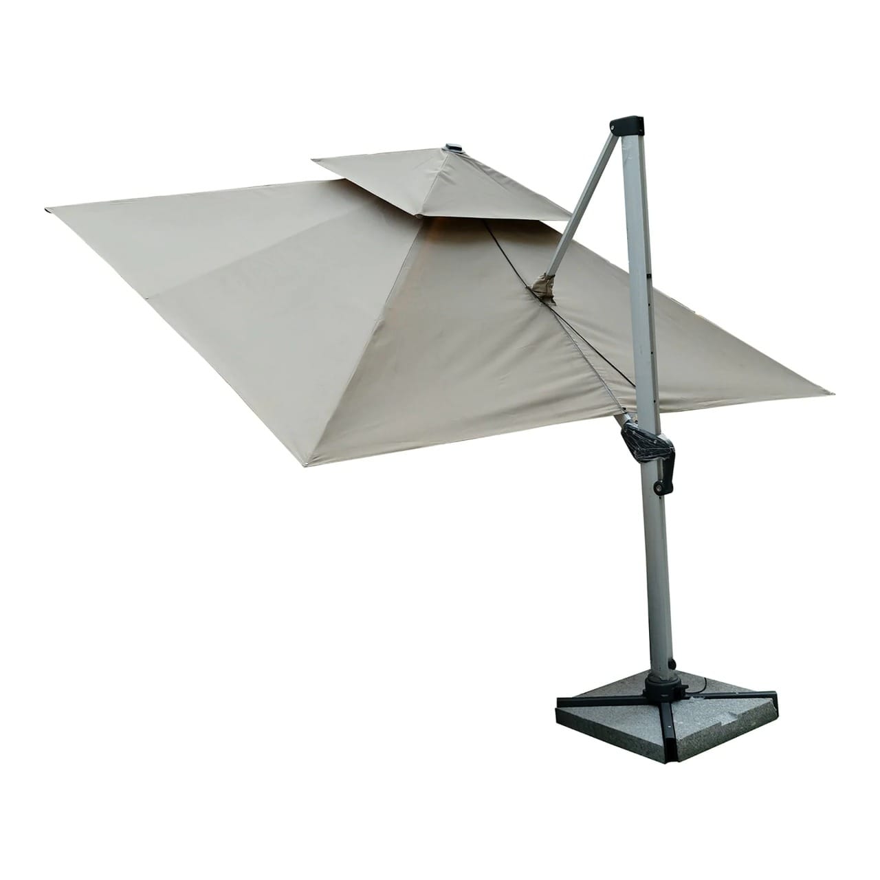 3.5m × 3.5m Cantilever Umbrella – Full Aluminium Frame, 360° Rotating, 160KG Marble Base – 2380 AED
