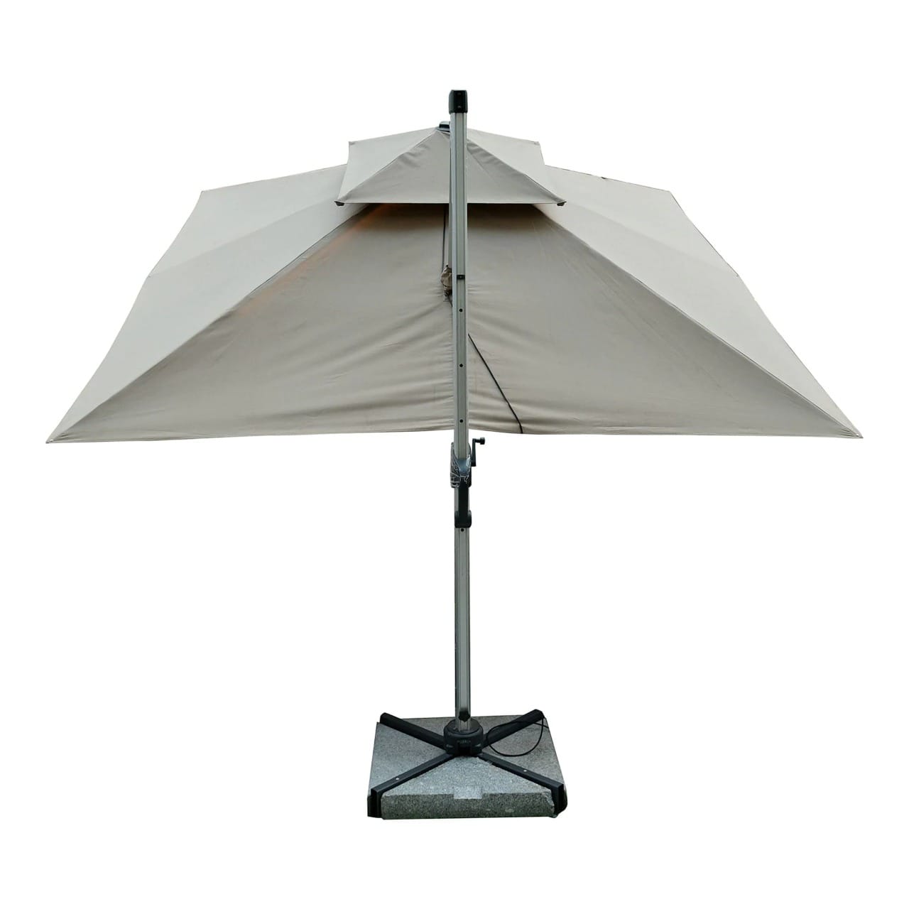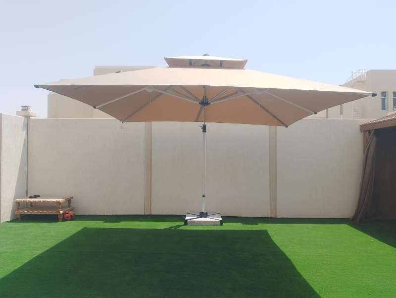 Premium 3.5m × 3.5m cantilever umbrella with full aluminium frame, 360° rotation system and ultra-heavy 160kg marble base. Built for ultimate stability and luxury outdoor shade in UAE conditions.