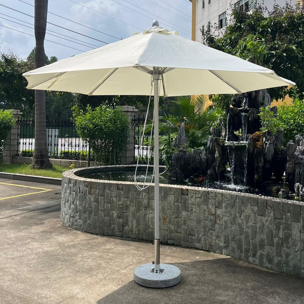 Equipped with an extra-heavy 80kg solid marble base, this umbrella offers superior stability even in open or windy areas. The cantilever (side-pole) design allows you to adjust the shade freely without blocking seating space, making it perfect for patios, poolsides, gardens, cafés, resorts, and outdoor lounges.